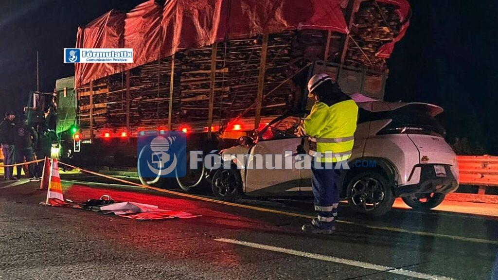 Fallece conductor tras incrustar su vehículo en camión de carga en Arco Norte, zona Españita, Tlaxcala