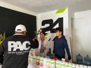 Mariana Garrido /*/ El candidato a la presidencia municipal de San Pablo del Monte del Partido Alianza Ciudadana (PAC), Jordán Mastranzo Capilla, sigue su recorrido por las principales calles del municipio.