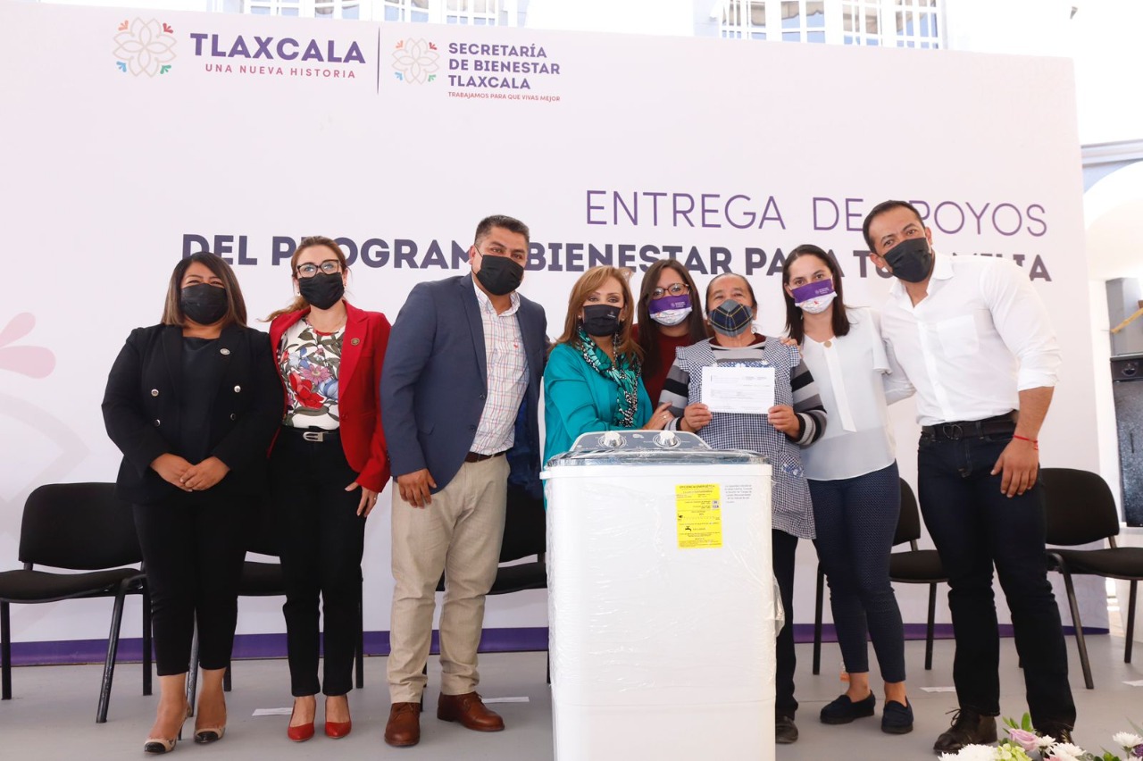 La gobernadora Lorena Cuéllar Cisneros encabezó la segunda entrega de apoyos del programa “Bienestar para Tu Familia”, en beneficio de personas en condiciones de vulnerabilidad de los municipios de Axocomanitla, Teolocholco y Zacualpan, quienes recibieron muebles de línea blanca a fin de mejorar su calidad de vida.