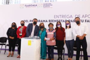 De manera simbólica, las jefas de familia, Juana Romero Serrano, Clementina Flores Águila, María Encarnación Ocotzi Lozano, María Delfina Irma Nahuatlato Romero, Gloria Pérez Nahuatlato, Anita Juárez Pérez y María del Carmen Aguayo Tizatl recibieron estos apoyos, en representación de los 207 beneficiarios de esta segunda entrega.