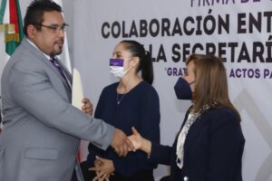 También estuvieron presentes en la firma de convenio, el secretario de Gobierno, Sergio González Hernández y el oficial Mayor de Gobierno, Ramiro Vivanco Chedraui.