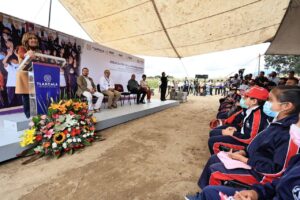Durante el acto protocolario, la mandataria estatal aseguró que gracias a la coordinación entre los tres niveles de gobierno, docentes, y madres y padres de familia, será posible concretar este proyecto que tras 12 años de gestión finalmente será una realidad.