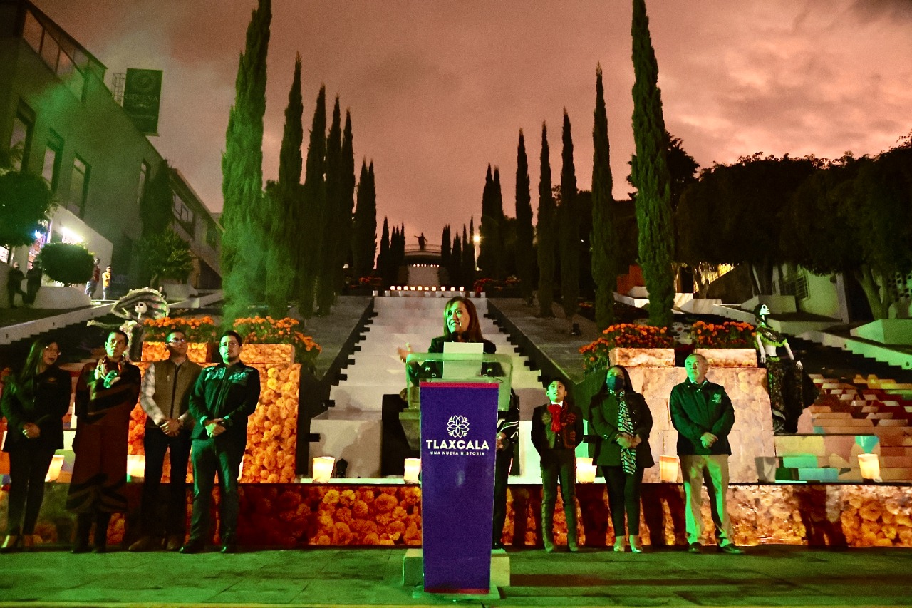 Ante decenas de personas que se dieron cita en este lugar para ser testigos del acto simbólico, la mandataria mencionó que esta fecha es muy importante para la población tlaxcalteca por lo emotivo y simbólico que representa la colocación de ofrendas en los hogares, dedicadas a los seres queridos que ya partieron de este mundo.