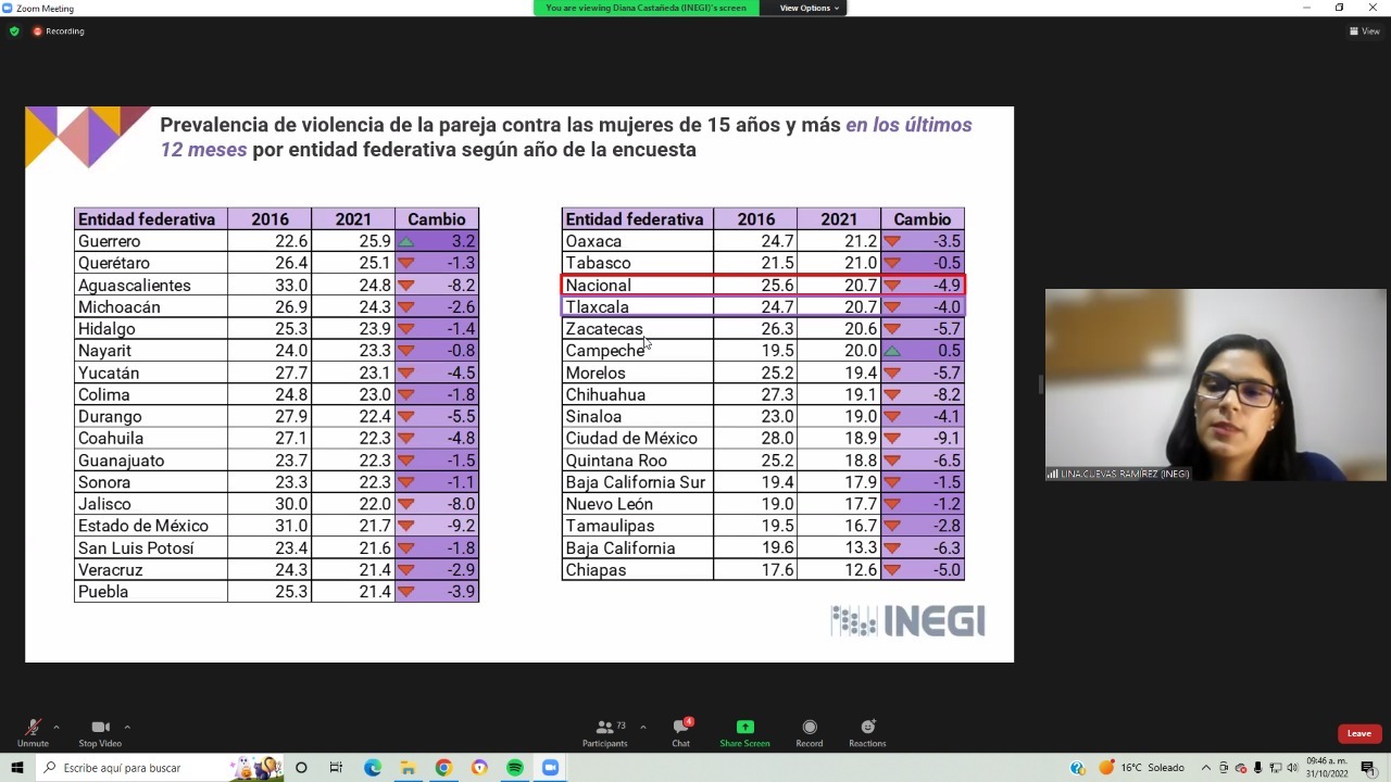 “Agradezco al Inegi todas estas facilidades que nos dan para que Tlaxcala conozca esos datos y sea la base para realizar las acciones institucionales, agradezco su valiosa participación en esta sesión tan importante para dar a conocer los resultados de la última encuesta de la entidad 2021, que sin lugar a dudas es algo importante para las diferentes instituciones que estamos participando”, detalló la también secretaria técnica del Sepasev.