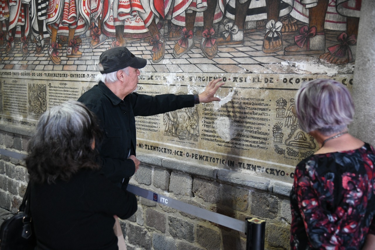 Un equipo integrado por cinco restauradores trabajará de la mano con la familia el muralista Hernández Xochitiotzin, quienes brindarán los planos originales de las pinturas, para revisar a detalle los trazos y colores originales en textos y la superficie pictórica en la que se perdió color al paso del tiempo.