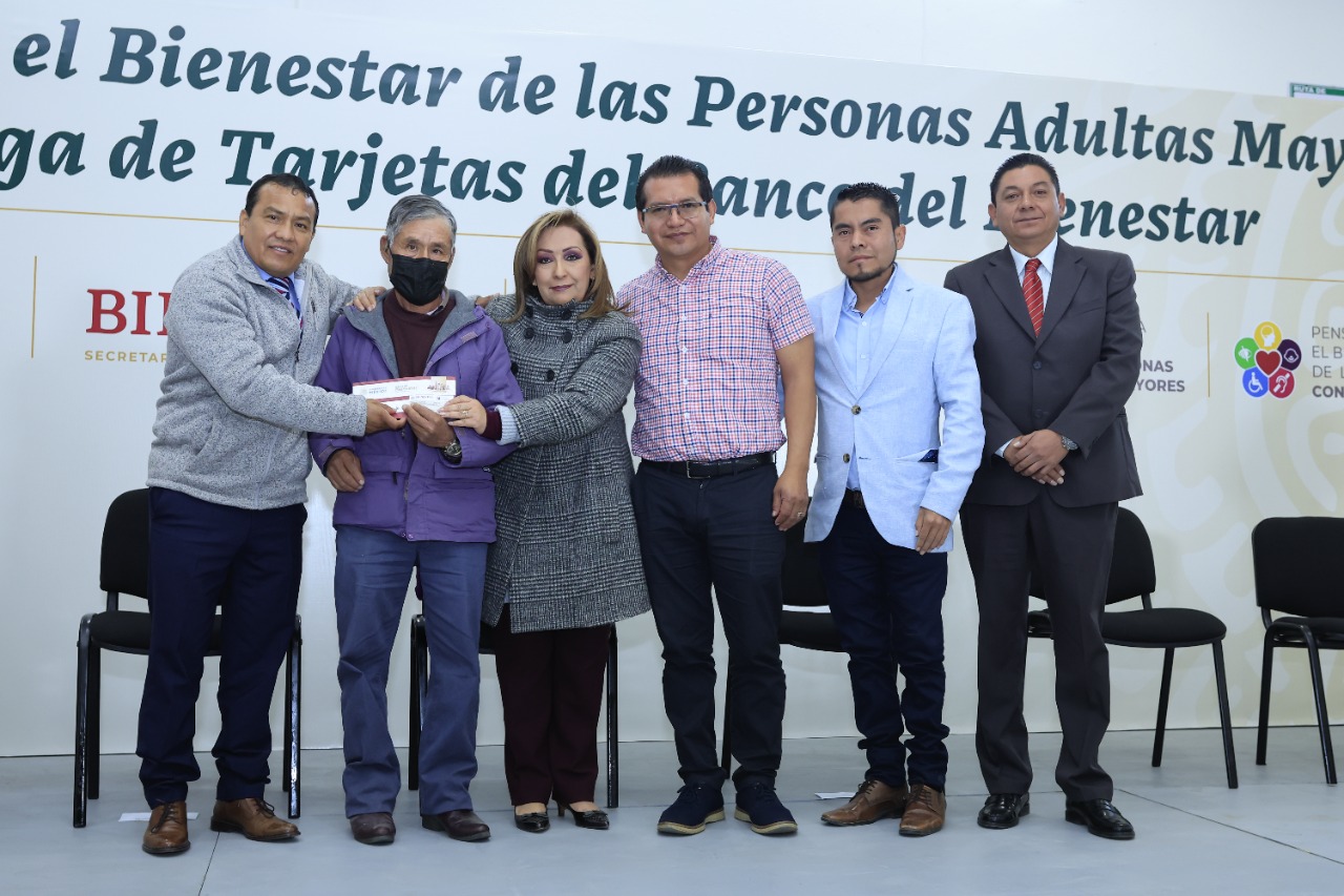La gobernadora de Tlaxcala, Lorena Cuéllar Cisneros entregó 484 tarjetas a beneficiarios del Programa Pensión para el Bienestar de las Personas Adultas Mayores de los municipios de Santa Cruz Tlaxcala, Tetla, Apizaco y Tzompantepec.