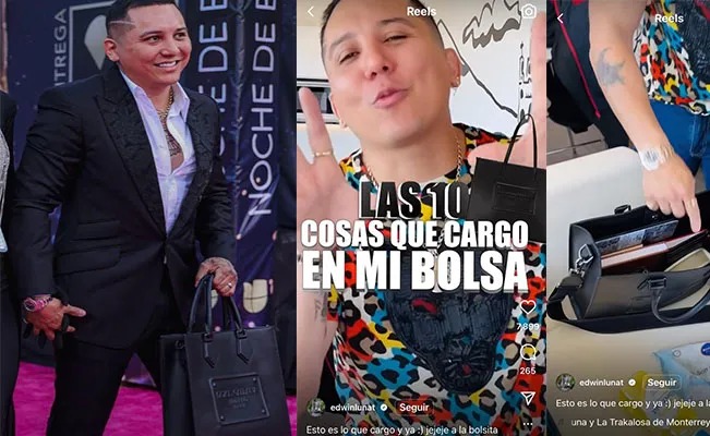 Ciudad de México: Durante la premiación de “Premios Lo Nuestro”, el cantante Edwin Luna causó polémica al aparecer con un bolso de mano.