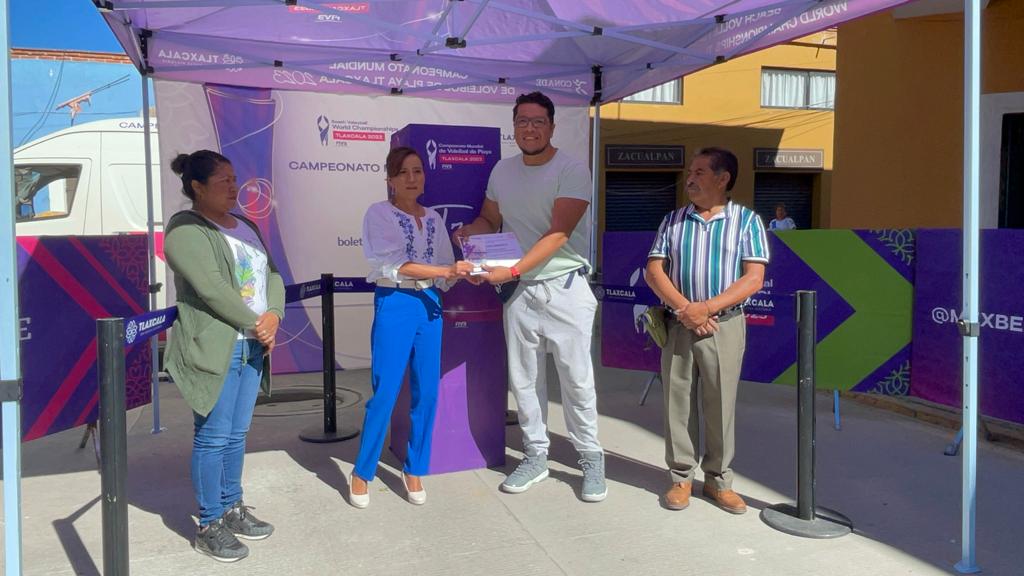 En su noveno día de recorrido, el trofeo del Campeonato Mundial de Voleibol de Playa Tlaxcala 2023, llegó a los municipios de Zacualpan, Tepetitla, Tetlatlahuca y Natívitas, para promocionar este evento y llevar motivación deportiva a todos los rincones de la población tlaxcalteca, como parte de la encomienda de la gobernadora Lorena Cuéllar Cisneros, de incluir a las personas en esta experiencia internacional.
