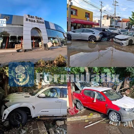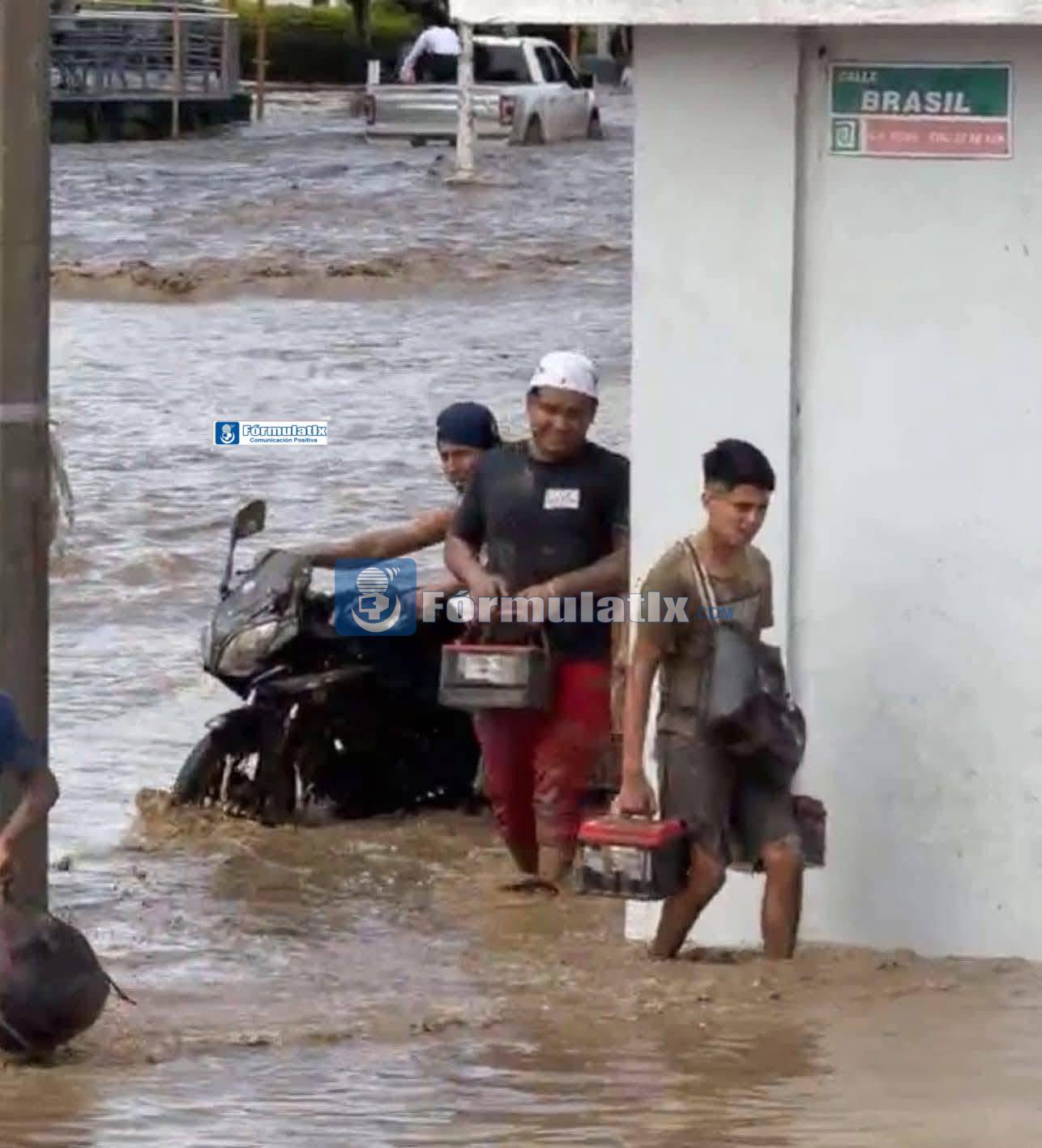 En el lugar flotan vehículos atrapados por el nivel del agua, lo que representa un serio riesgo para quienes circulan por la zona.