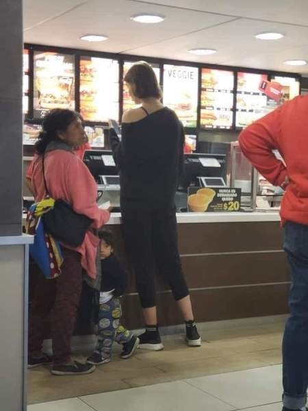 Se acercó a la caja a pedir algo de comer y beber y dejó a su hijo en el suelo. El cajero, empleado del lugar, le contestó muy mal y grosero.