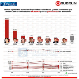 De acuerdo con una encuesta realizada por la empresa RUBRUM, el alcalde se coloca apenas con el 18.7 por ciento de las preferencias electorales, mientras que en primer lugar se coloca la senadora Ana Lilia Rivera con el 40.1por ciento, lo que demuestra una desventaja clara.