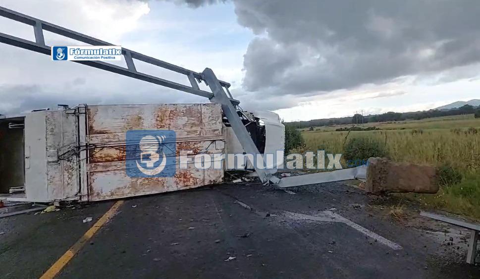 Un percance vial se registró en el camino hacia Huamantla, a la altura de la Ciudad Industrial Xicoténcatl III, donde un camión recolector de desechos del municipio de Ixtenco terminó volcado.