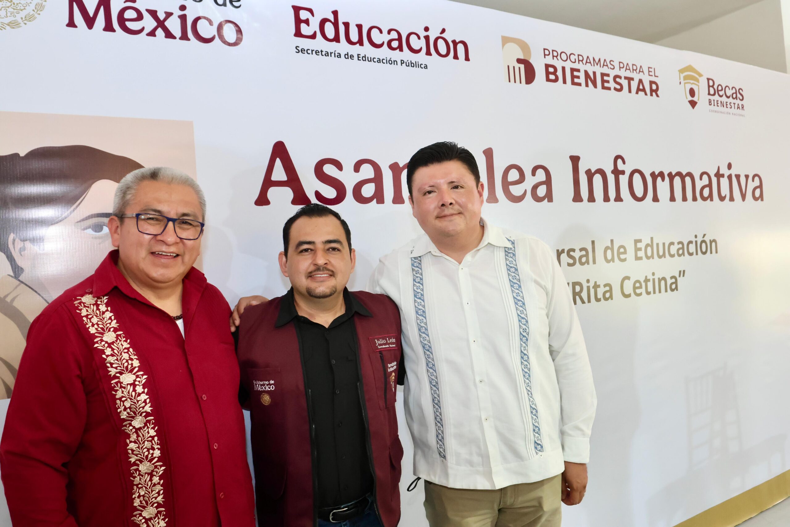 Con el objetivo de detallar el procedimiento para la incorporación a la Beca Universal de Educación Básica “Rita Cetina” para estudiantes de secundaria de escuelas públicas, los titulares de la Secretaría de Educación Pública del Estado y de la Unidad de Servicios Educativos del Estado de Tlaxcala (SEPE-USET), Homero Meneses Hernández y de Becas para el Bienestar Benito Juárez, Julio León Trujillo, encabezaron la asamblea informativa, dirigida a tutores, padres y madres de familia.