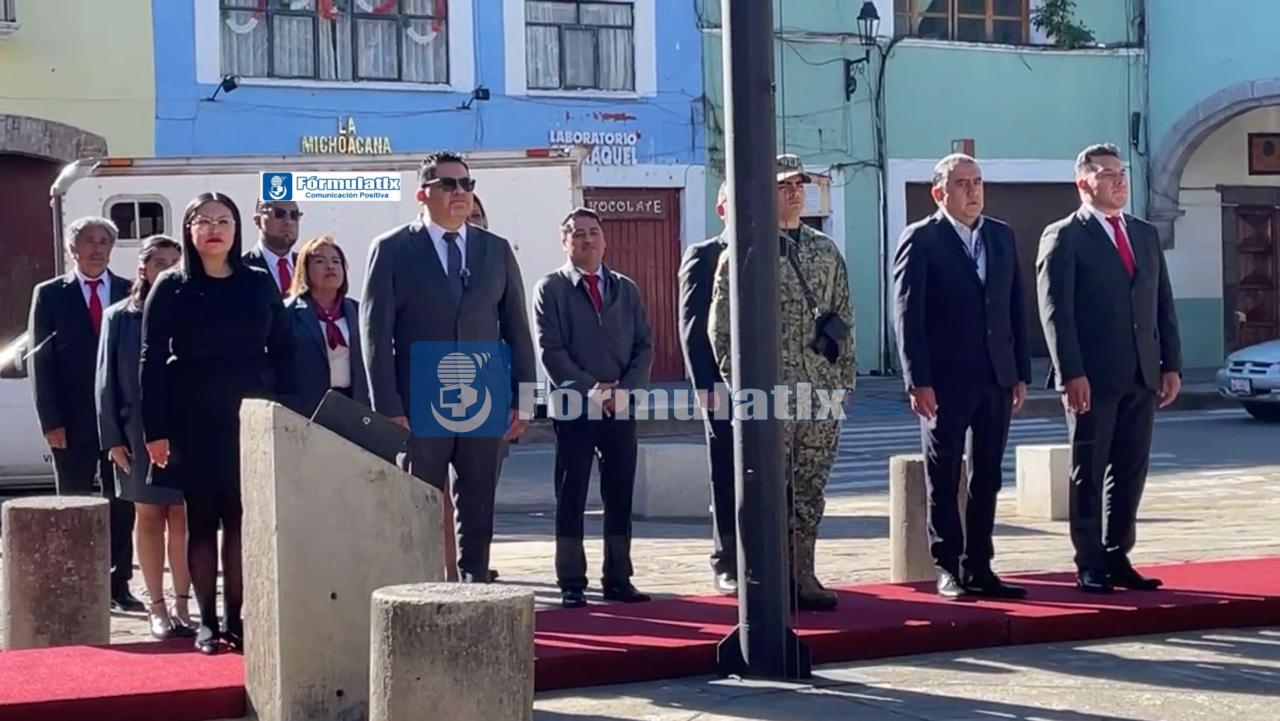 En un acto cargado de patriotismo y respeto a los símbolos nacionales, el presidente municipal de Santa Cruz Tlaxcala, Omar Maldonado encabezó el izamiento de bandera en el Palacio de Gobierno, donde invitó a la ciudadanía a unirse en torno a la democracia, la libertad y el orgullo de ser mexicanos.