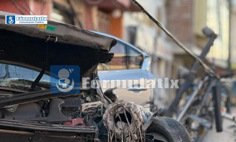 Un automóvil sedán gris quedó completamente destrozado tras chocar con un poste en la avenida principal del Centro de Calpulalpan. El impacto causó daños visibles tanto en el vehículo como en la infraestructura vial.