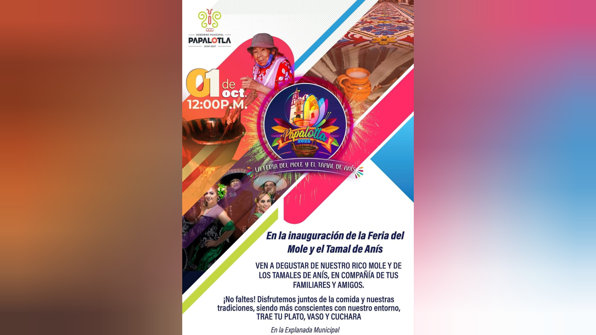 El gobierno municipal enfatiza la importancia de disfrutar las tradiciones gastronómicas siendo conscientes del entorno, por lo que solicita a los asistentes traer sus propios platos, vasos y cucharas como parte de una celebración más sustentable.