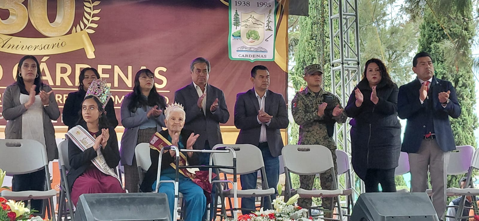 Carlos Augusto Pérez Hernández acompaña a la presidenta Elena Macías en el 30° Aniversario de Lázaro Cárdenas