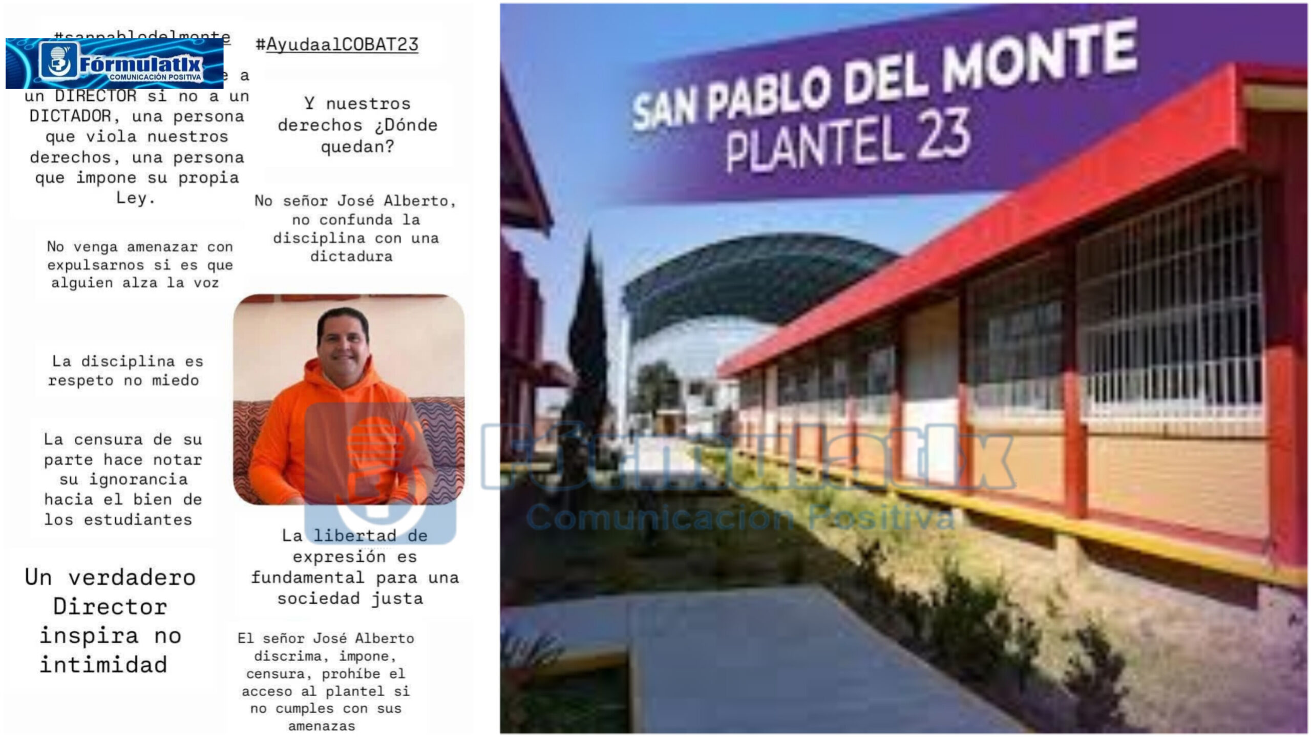 De acuerdo con las denuncias, en el COBAT 23 el director José Alberto Moisés, se imponen medidas arbitrarias y castigos desproporcionados, se limita la libertad de expresión y se intimida a los alumnos que alzan la voz para exigir un trato digno. La comunidad estudiantil afirma que la disciplina se ha convertido en una herramienta de control y miedo, más que en un valor formativo.