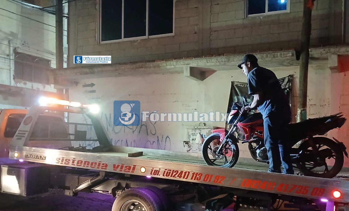 El hallazgo ocurrió en la esquina de las calles Juan Cuamatzi y Emiliano Zapata, donde agentes detectaron una moto roja sin placas y mal estacionada, lo que generó sospechas inmediatas.