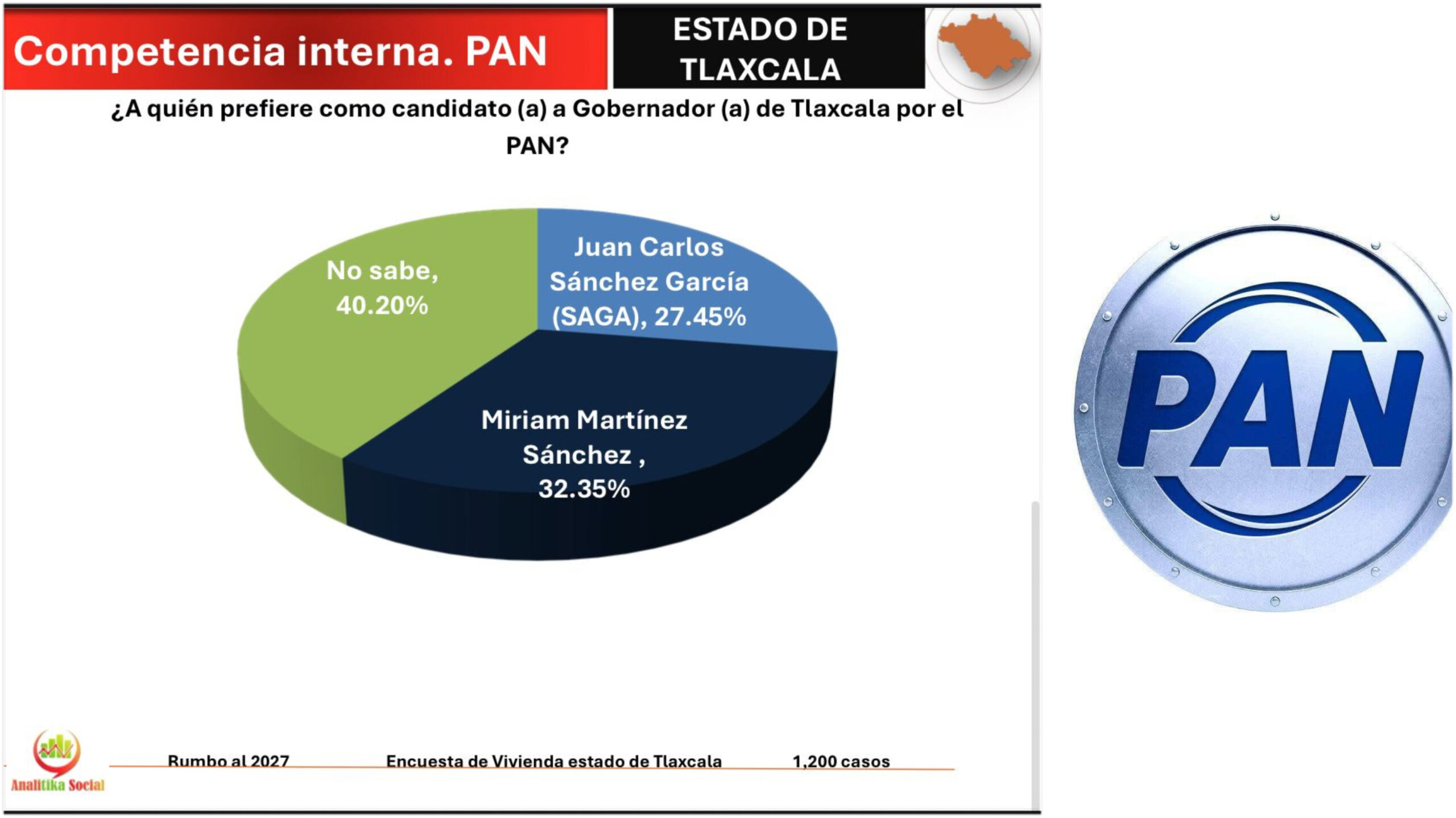 El estudio también midió la preferencia interna de los partidos, mostrando que Acción Nacional avanza en la definición de su proyecto. En la competencia interna del PAN, Miriam Martínez Sánchez encabeza las preferencias con un 32.35% , seguida de Juan Carlos Sánchez García con un 27.45%. Esta definición de liderazgos demuestra un crecimiento en la cohesión interna del partido rumbo a la gubernatura de 2027.