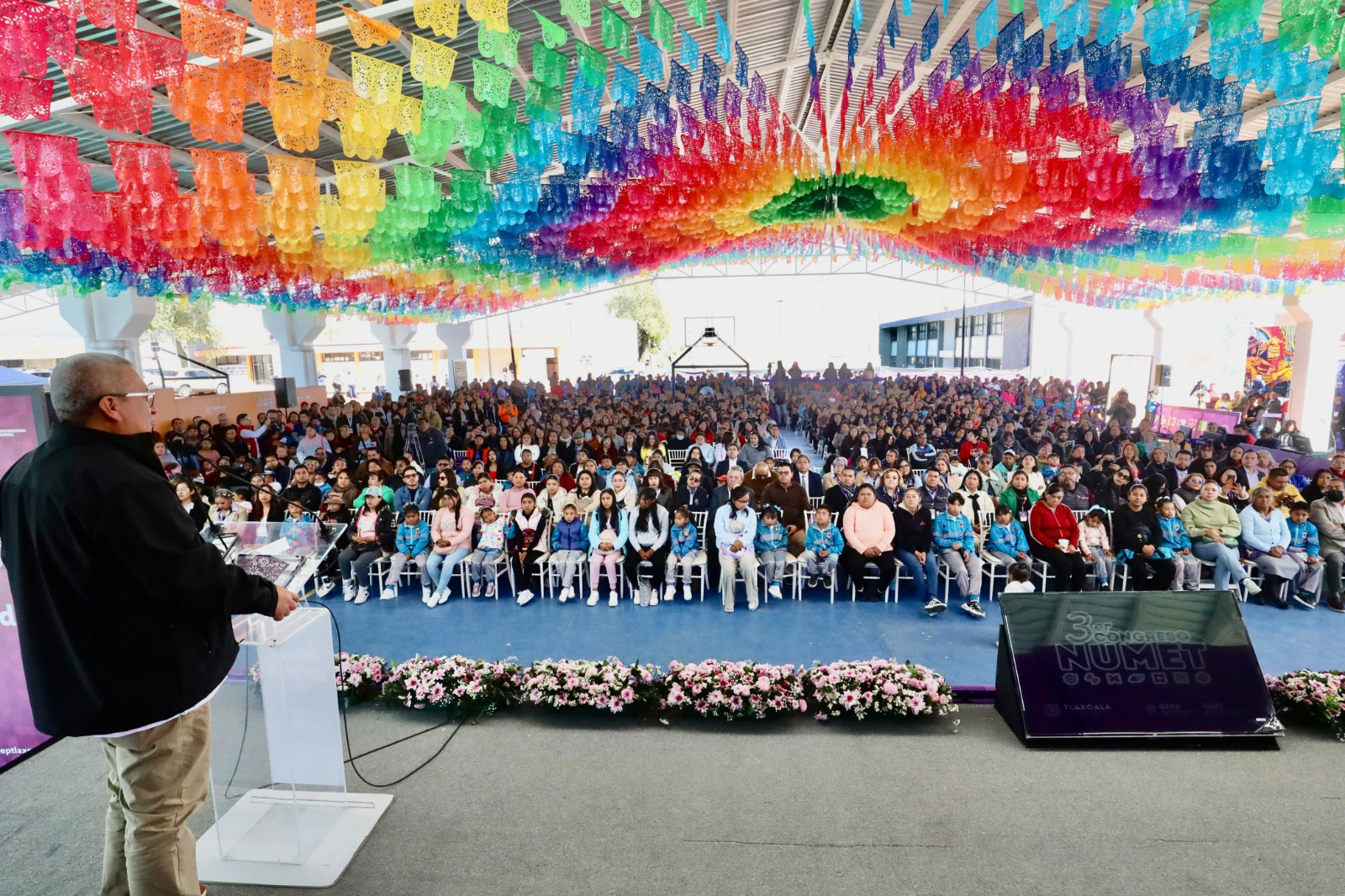 “El NUMET es un modelo vivo, profundamente tlaxcalteca, que expresa el Humanismo Mexicano impulsado por el expresidente Andrés Manuel López Obrador y la presidenta Claudia Sheinbaum Pardo. Su consolidación depende del compromiso de maestras, maestros y comunidades educativas”, afirmó.