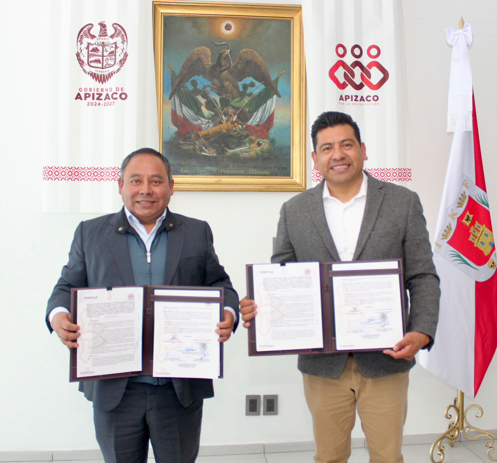 Los trabajadores colocaron cartulinas con consignas en las oficinas ubicadas en la colonia Loma Xicohténcatl, donde exigieron alto a las arbitrariedades y presiones que, aseguran, afectan su desempeño.