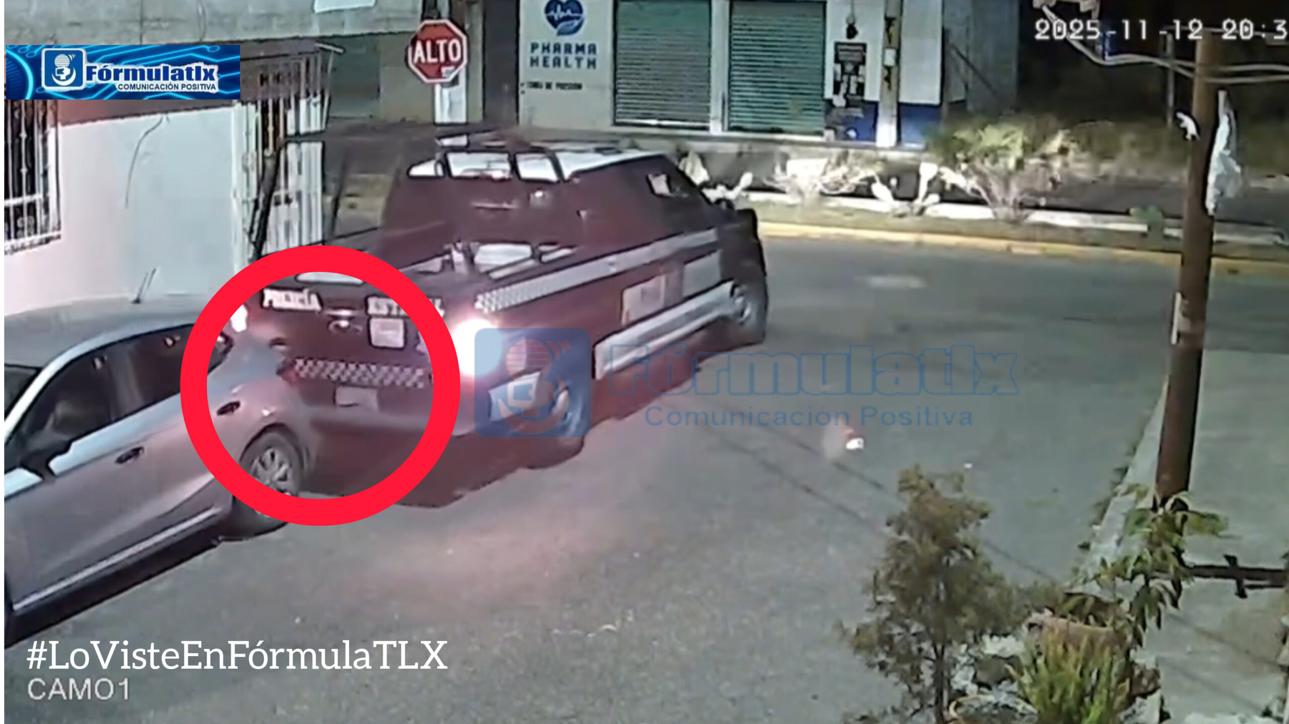En la grabación —captada por una cámara de seguridad— se aprecia claramente el momento en que la patrulla golpea la parte trasera de un automóvil estacionado en una calle de Apizaco. Lejos de permanecer en el sitio o verificar los daños causados, el conductor de la unidad oficial acelera y se aleja como si nada hubiera ocurrido.