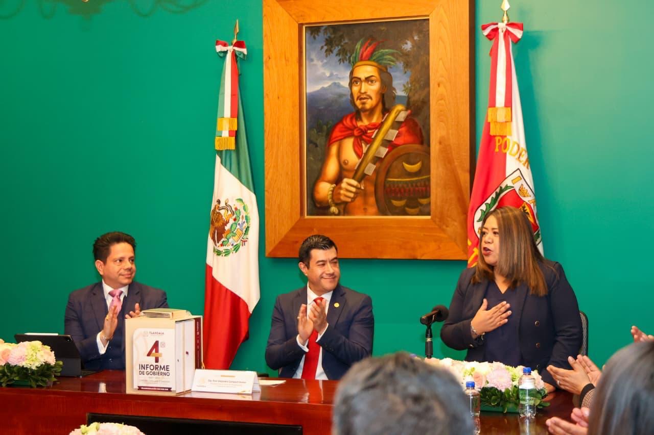 Expuso que todo este trabajo coordinado con los poderes Legislativo y Judicial, así como autoridades municipales a favor de los tlaxcaltecas, refleja la visión social, de puertas abiertas, principios de la Cuarta Transformación “con rostro de mujer, que coloca al centro de sus acciones a los sectores que más lo necesitan”.