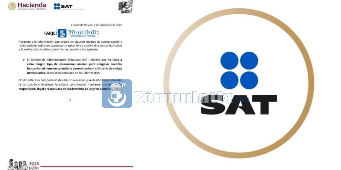 El Servicio de Administración Tributaria (SAT) aclaró que es totalmente falsa la versión sobre un presunto congelamiento masivo de cuentas —bancarias— en diciembre de 2025.