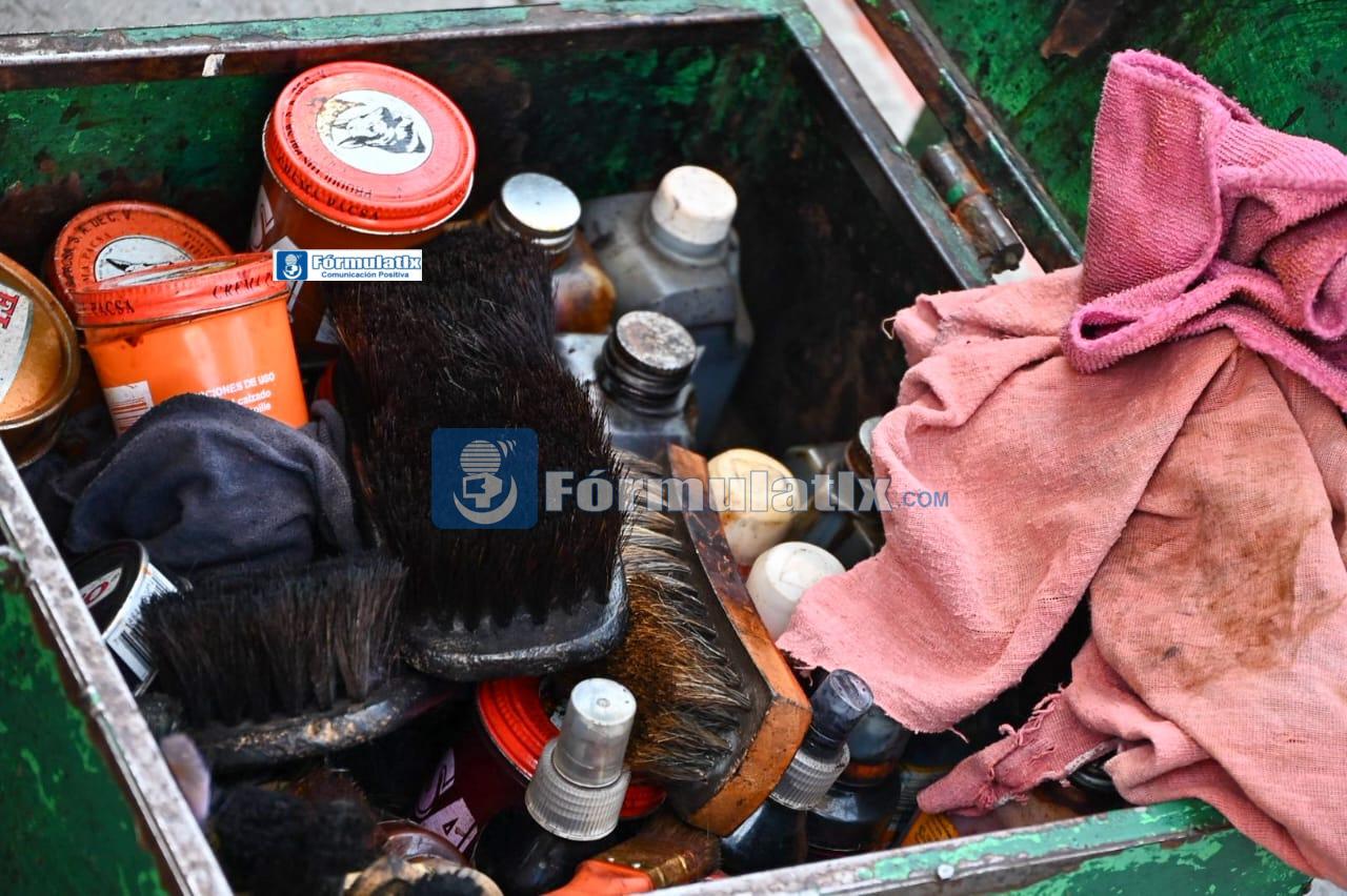 María Margarita Roja Díaz se ha convertido en una figura conocida en la Plaza Juárez de la capital tlaxcalteca, donde todos los días bolea decenas de zapatos desde un pequeño espacio que ocupa en la vía pública. Originaria de Xicohtzinco, encontró en este oficio una oportunidad gracias a su amigo don Pepe, quien la apoyó y le enseñó el trabajo.