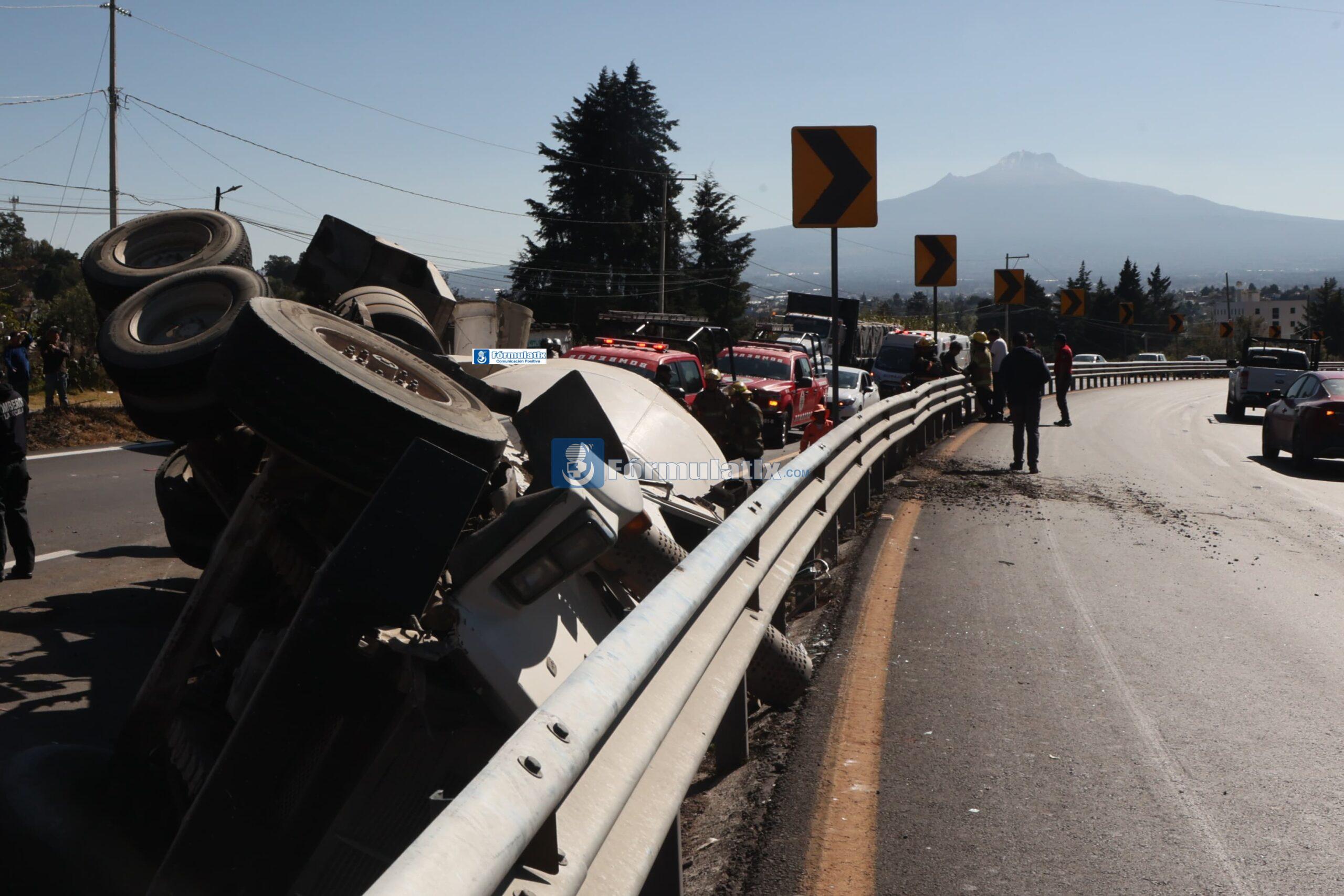 Durante esta mañana, un camión tipo revolvedora volcó sobre la autopista Apizaco-Tlaxcala con dirección hacia Texmelucan, en los límites de Tizatlán del municipio de Tlaxcala y Tepeticpac del municipio de Totolac, dejando al conductor lesionado, mismo que fue atendido y valorado por paramédicos de Zacualpan que acudieron al rescate. Además, personal de Bomberos también arribó al lugar para coadyuvar en las labores de rescate del conductor que se encontraba atrapado al interior de la pesada unidad. Finalmente, hasta las 11:20 horas personal de Guardia Nacional continúa abanderando el lugar, mientras que una empresa especializada de grúas se dispone a retirar la pesada unidad que iba cargada con concreto.
