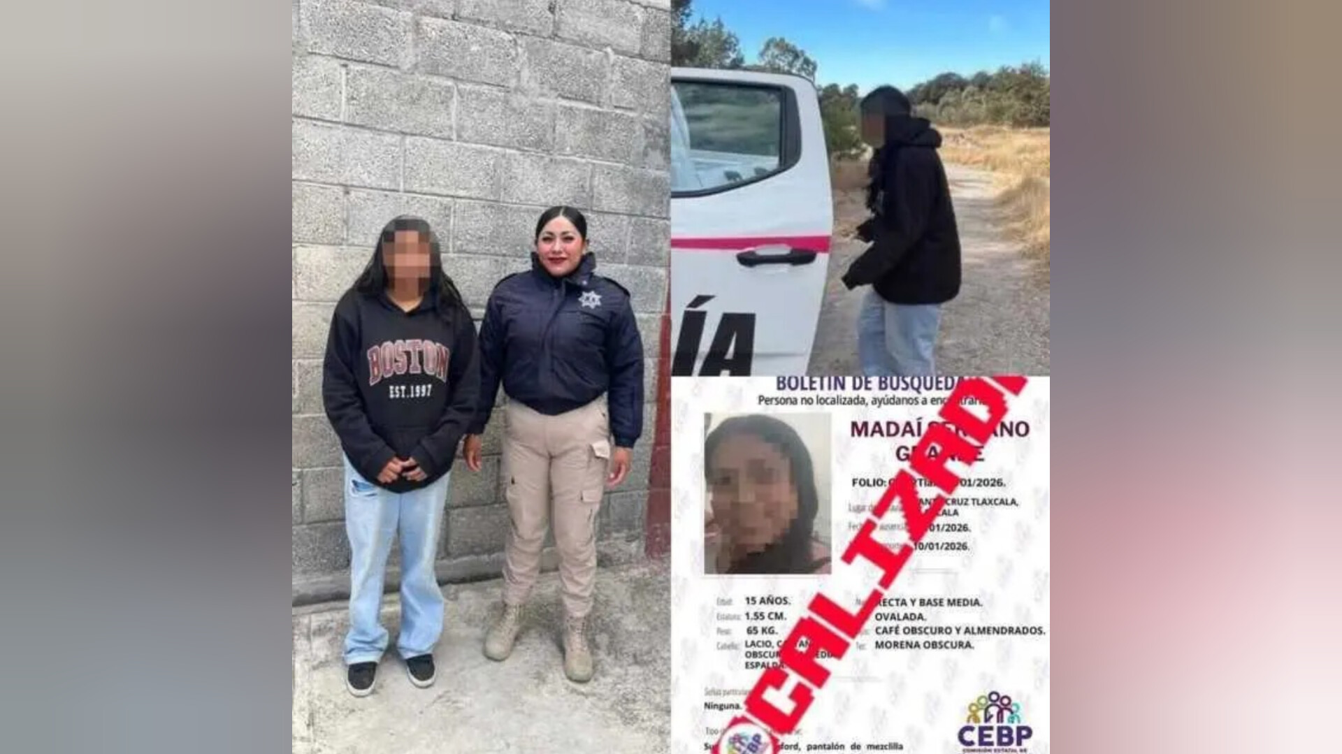 Una menor de apenas 15 años, que contaba con boletín de búsqueda vigente, fue localizada por policías tras un reporte ciudadano oportuno en Santa Cruz Tlaxcala.
