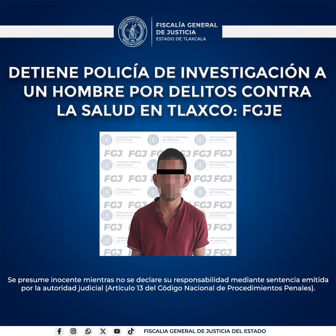 DETIENE POLICÍA DE INVESTIGACIÓN A UN HOMBRE POR DELITOS CONTRA LA SALUD EN TLAXCO: FGJE