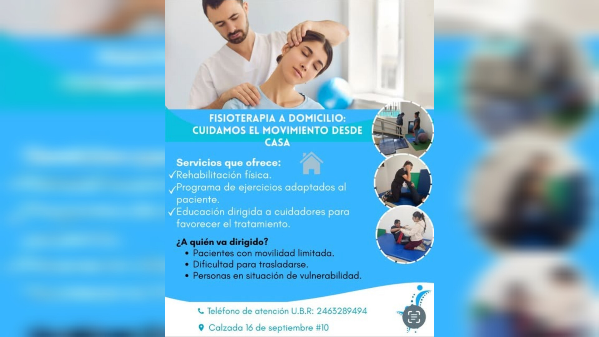 El Sistema Municipal DIF de Santa Cruz Tlaxcala, a través de la Unidad Básica de Rehabilitación, informa a la ciudadanía que se encuentra disponible el servicio de fisioterapia a domicilio, dirigido a personas en condición de vulnerabilidad, adultos mayores y ciudadanos de bajos recursos con limitaciones de movilidad.