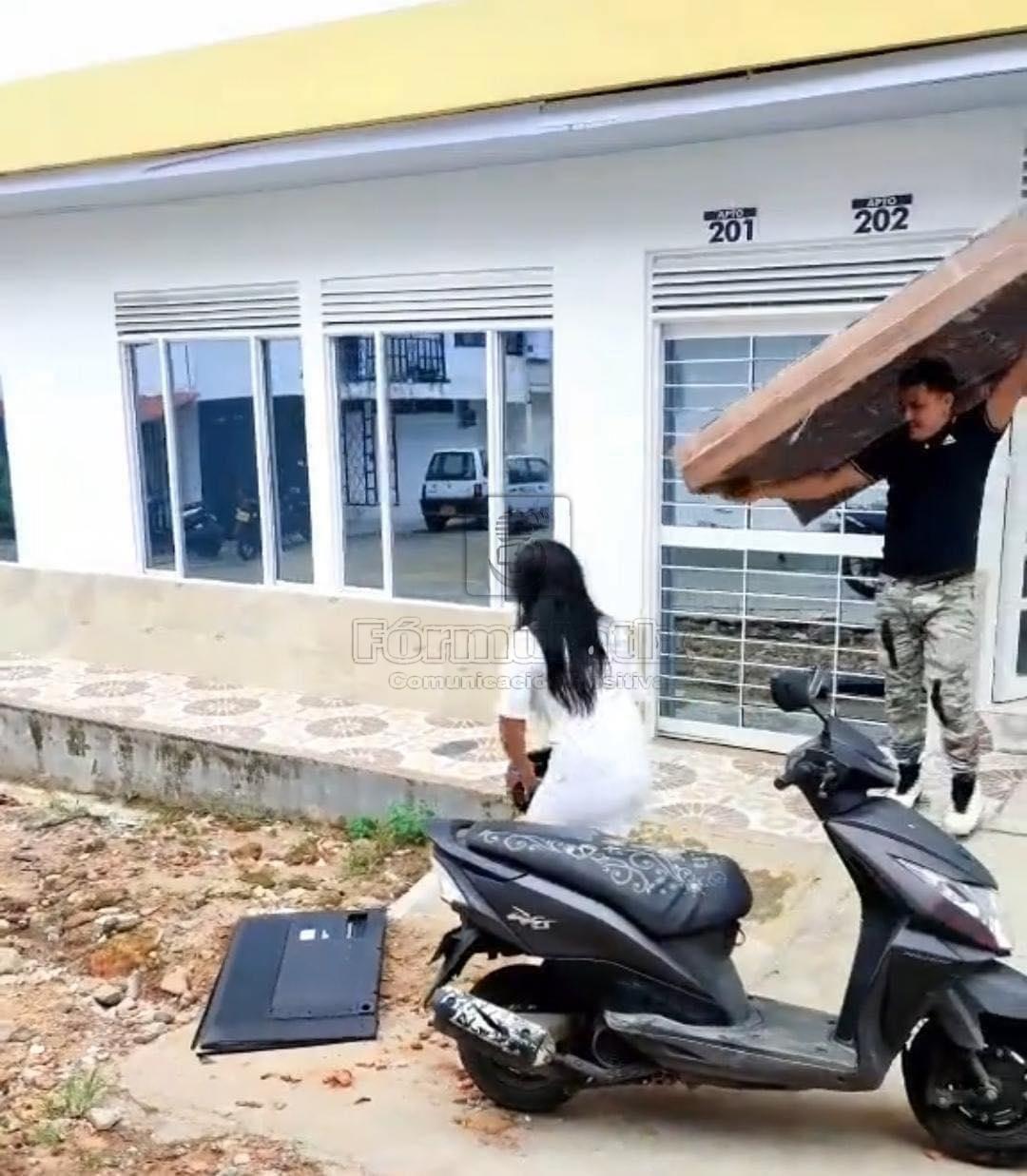 Una pareja se volvió tendencia en redes tras mostrar como transportar una televisión nueva en su moto, la cual acabó cayéndose en el suelo.