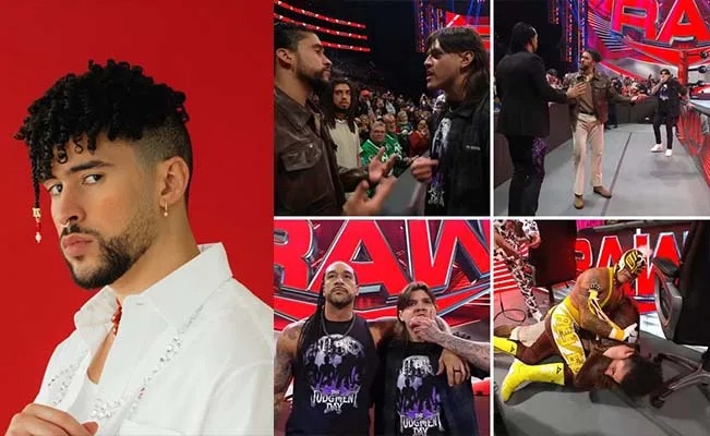 El cantante fue arrojado contra la mesa de comentaristas por el luchador Dominik Mysterio