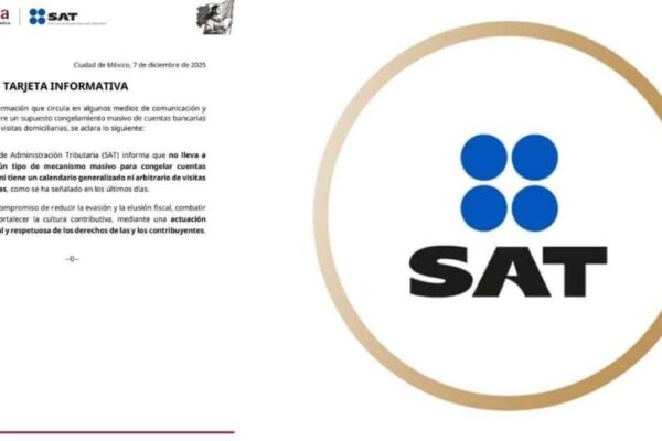 La autoridad tributaria afirma que no existen operativos masivos ni arbitrarios en el país El Servicio de Administración Tributaria (SAT) aclaró que es totalmente falsa la versión sobre un presunto congelamiento masivo de cuentas —bancarias— en diciembre de 2025. La autoridad fiscal señaló que la información compartida indicaba que “miles de cuentas bancarias en todos los bancos…